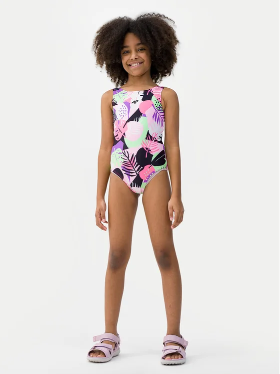 Der einteilige Badeanzug für Mädchen von 4F ist die perfekte Kombination aus strapazierfähigem Synthetikmaterial und Elastan für eine perfekte Anpassung an die Figur des Kindes und Bewegungsfreiheit bei sommerlichen Aktivitäten. Dank seiner schnell trocknenden Fasern garantiert er maximalen Komfort am Strand und im Schwimmbad. Der Rückenausschnitt und die breiten Schulterträger bieten zusätzlichen Komfort. Der farbenfrohe Allover-Print verleiht ihm zusätzlichen Charme. Die perfekte Wahl für den Sommerspaß im Wasser!