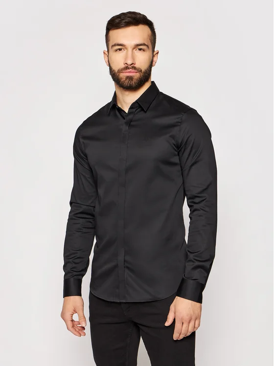 Armani Exchange Hemd 8NZCBD ZN10Z 1200 Schwarz Slim Fit