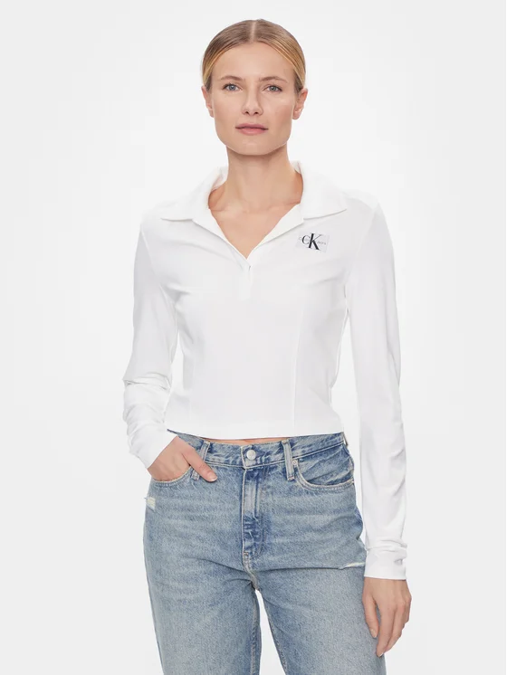 Calvin Klein Jeans Bluse Polo Collar Milano Regular Top J20J222556 Weiß Regular Fit