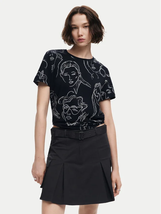 Desigual T-Shirt Caras 24WWTK54 Schwarz Regular Fit