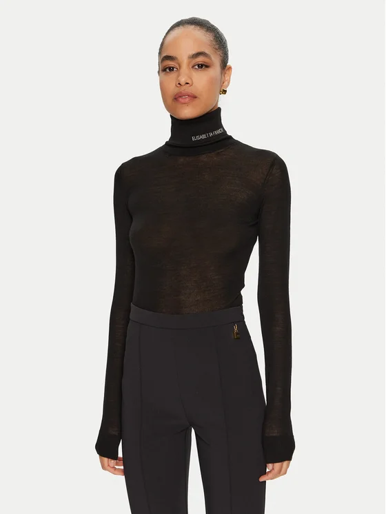 Elisabetta Franchi Rollkragenpullover MK-25S-47E2 Schwarz Regular Fit