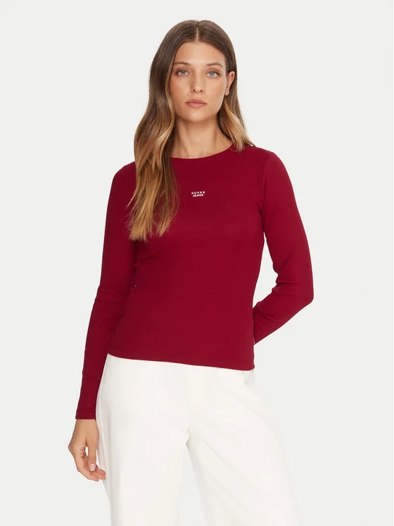 Guess Jeans Bluse W5BP01 KA0H1 Rot Slim Fit