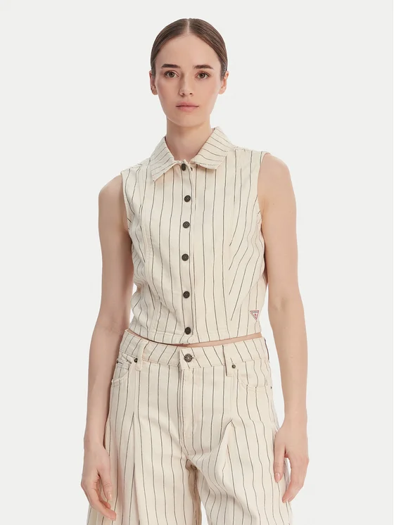 Guess Jeans Weste W6GHZ9 D7961 Écru Slim Fit