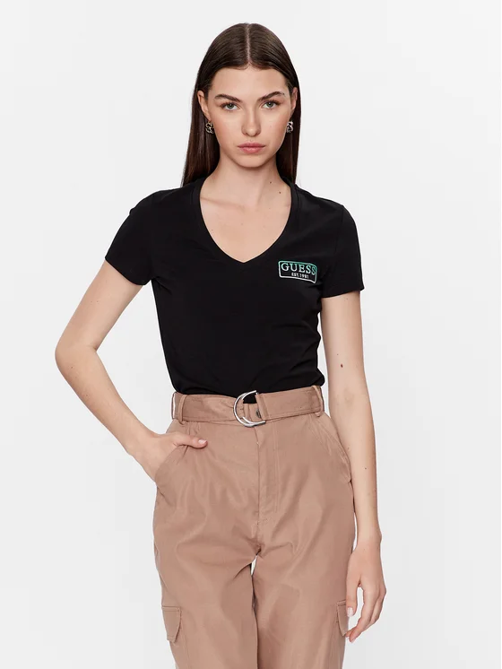 Guess T-Shirt W3YI38 J1314 Schwarz Slim Fit