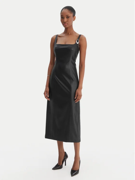 HUGO Kleid aus Kunstleder Kattarina-1 50553546 Schwarz Slim Fit