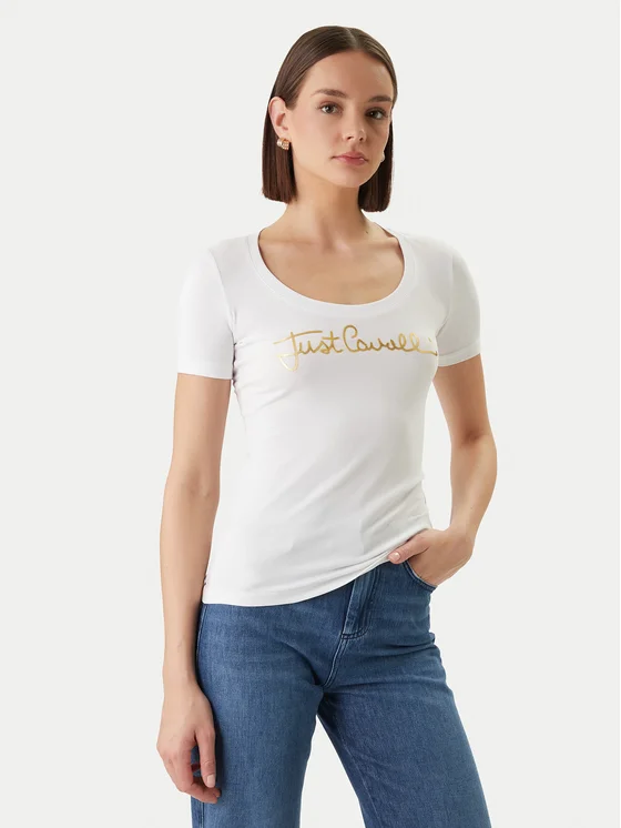 Just Cavalli T-Shirt 80PAHT02 CJ502 Weiß Slim Fit