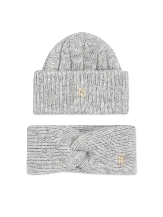 Tommy Hilfiger Mütze und Stirnband Set Th Timeless Beanie + Headband AW0AW15370P4A Grau