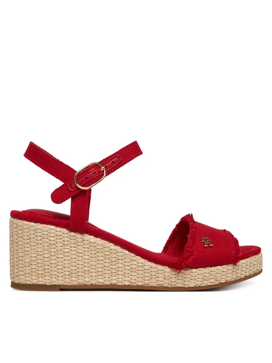 Tommy Hilfiger Sandalen Mid Woven Wedge Espad Fringe FW0FW09470 Rot