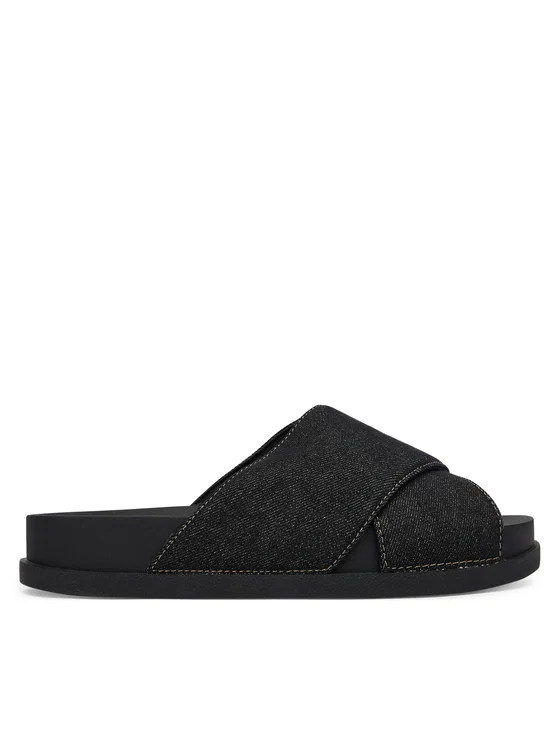 Tommy Jeans Pantoletten Tjw Comfort Slides Washed Denim EN0EN02898 Schwarz