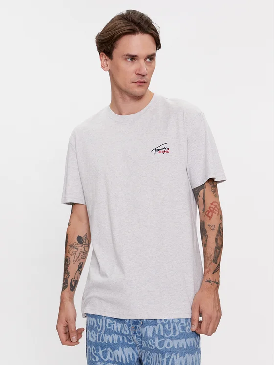 Tommy Jeans T-Shirt Small Flag DM0DM17714 Grau Classic Fit