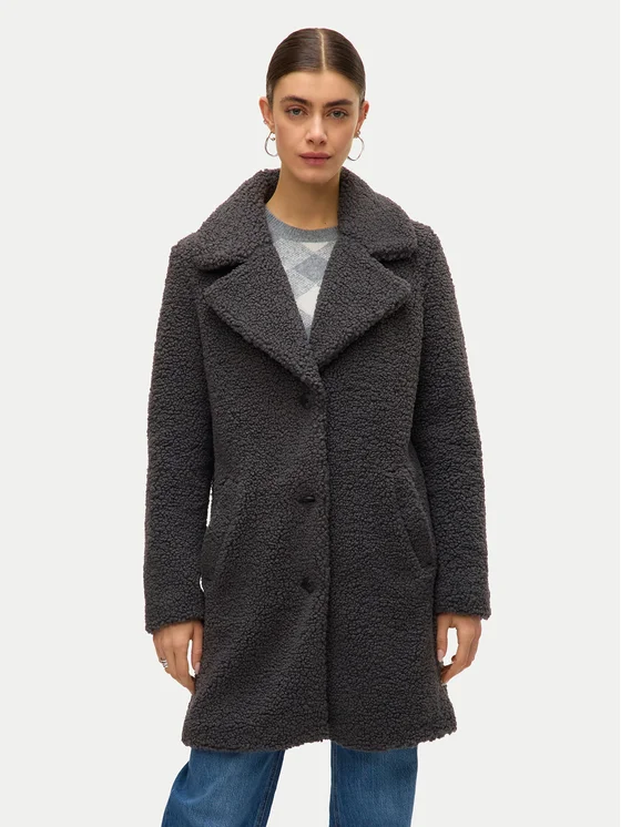 Vero Moda Fellmantel Kylie Teddy 10289938 Grau Loose Fit